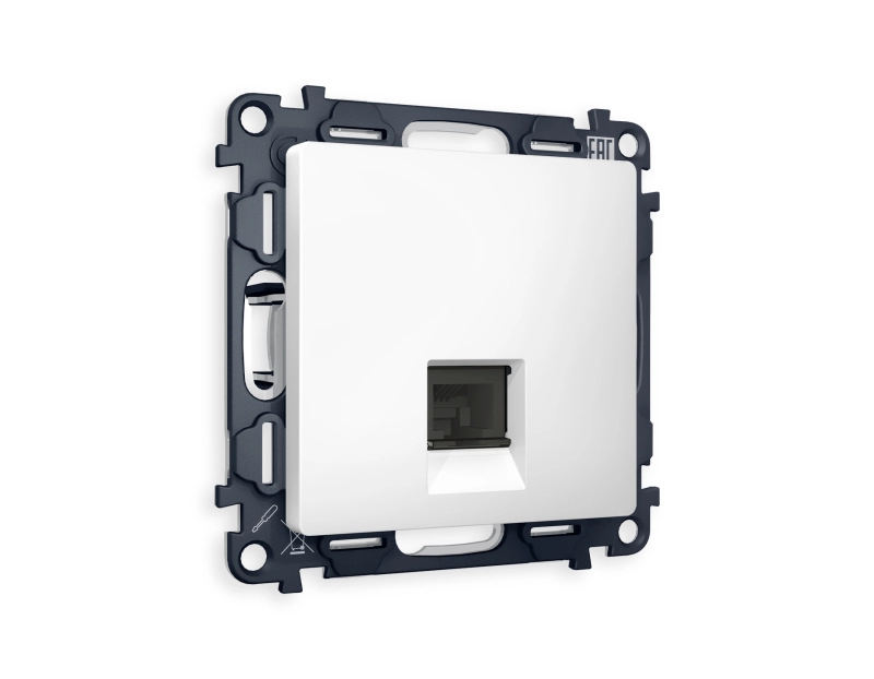 Комплект механизма телефонной розетки ALFA MA132030 Белый матовый RJ-11(4P4C) с автоматической защитной шторкой QUANT (AP1320, VM190)