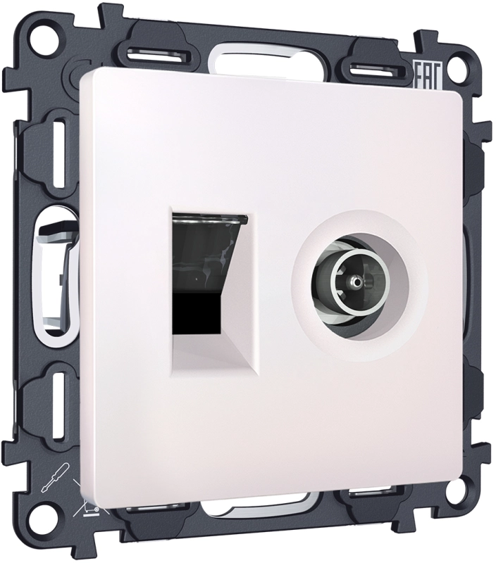Розетка TV оконечная + компьютерная RJ-45 CAT6 Ambrella ALFA (Жемчуг)