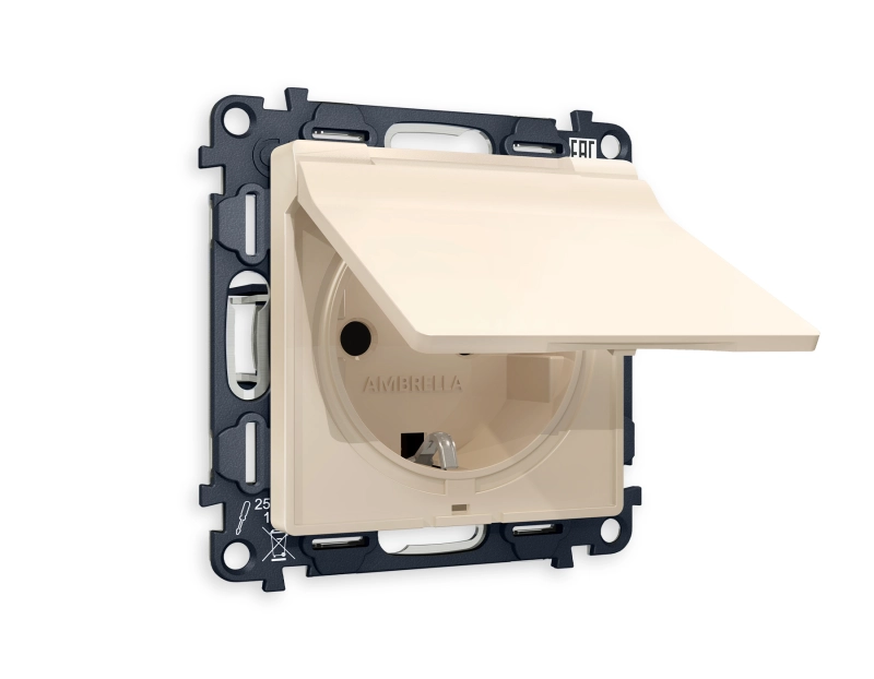 Комплект механизма электрической розетки ALFA MA328010 Бежевый матовый 16A-250V 50Hz 2P+E с заземлением со шторками и защитной крышкой IP44 QUANT (AP3280, VM141)