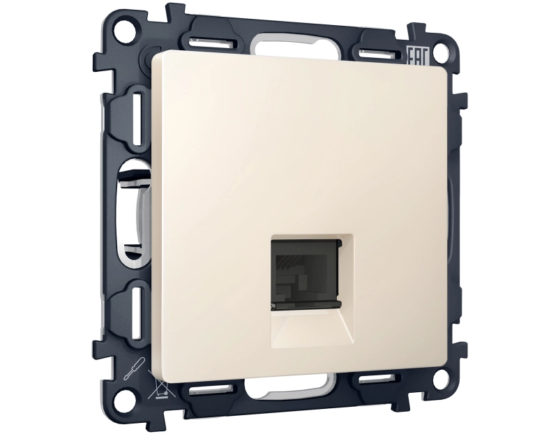 Комплект механизма компьютерной розетки RJ-45 (8P8C) CAT6A экранированной с автоматической защитной шторкой ALFA MA332005 Бежевый матовый QUANT (AP3320, VM185)