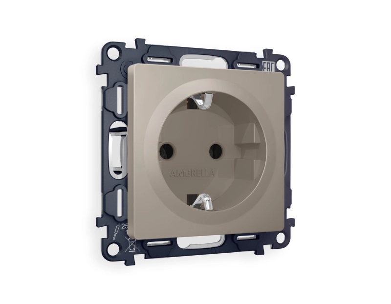 Комплект механизма электрической розетки ALFA MA366010 Серо-бежевый матовый 16A-250V 50Hz 2P+E с заземлением на винтовых зажимах QUANT (AP3660, VM141)