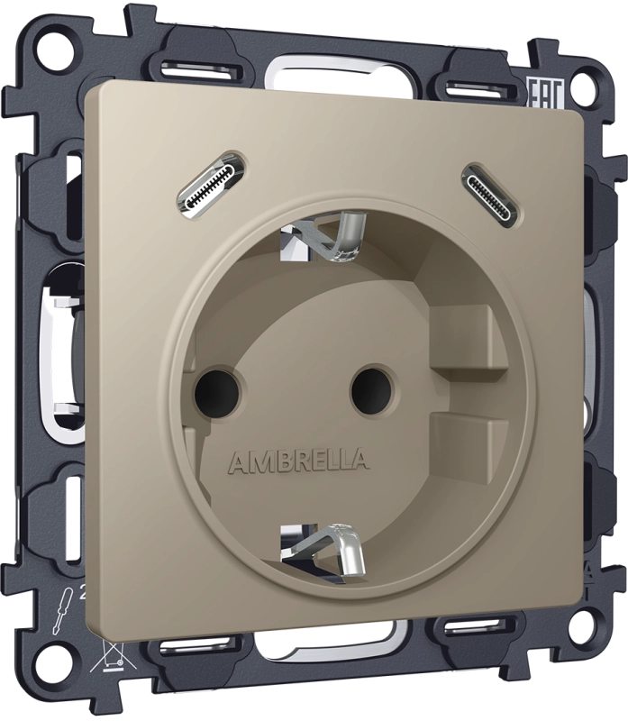Розетка электрическая Ambrella ALFA СЕРО-БЕЖЕВЫЙ МАТОВЫЙ