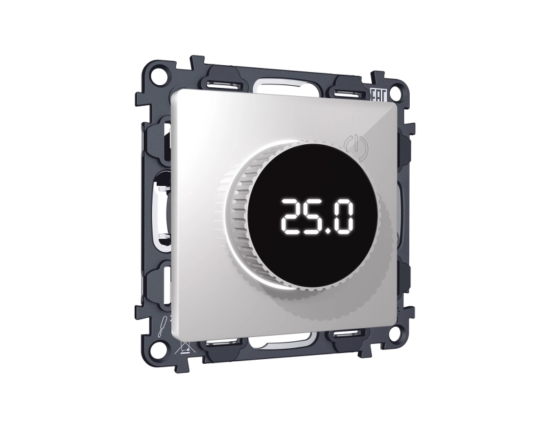 Комплект механизма терморегулятора с цифровым дисплеем с подсветкой и датчиком для теплого пола 16A-250V ALFA MA405810 Серебро глянец QUANT (AP4058, VM1385)