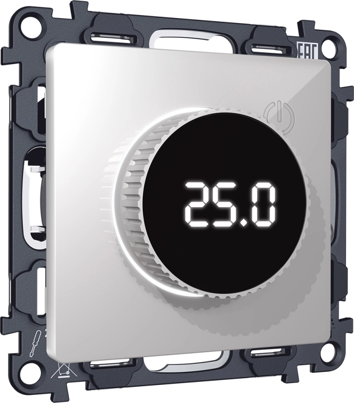 Терморегулятор с цифровым дисплеем с подсветкой и датчиком для теплого пола Ambrella ALFA (Серебро глянец)
