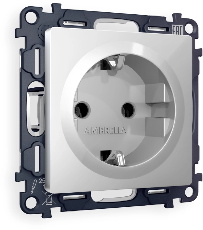 Розетка электрическая Ambrella ALFA СЕРЕБРО ГЛЯНЕЦ
