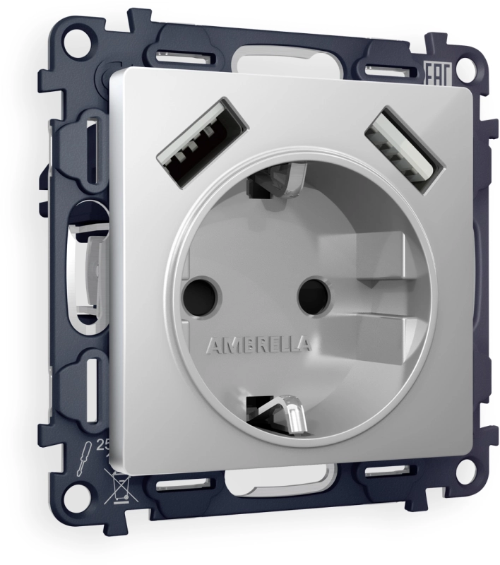 Розетка электрическая Ambrella ALFA СЕРЕБРО ГЛЯНЕЦ