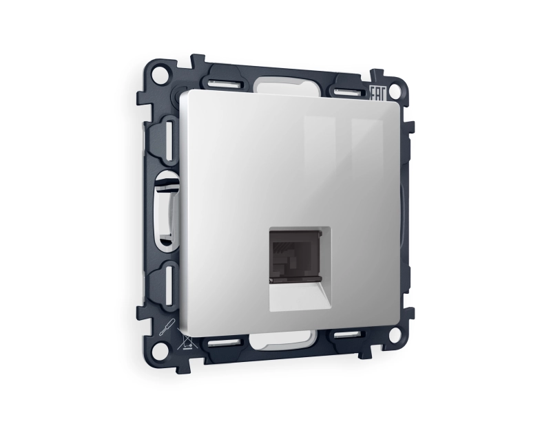 Комплект механизма телефонной розетки ALFA MA412030 Серебро глянец RJ-11(4P4C) с автоматической защитной шторкой QUANT (AP4120, VM190)