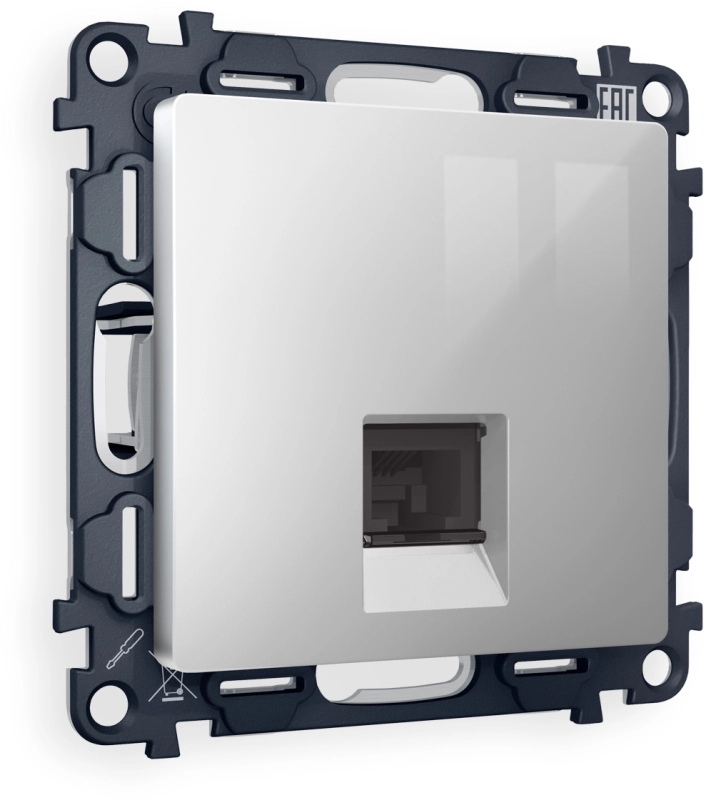 Розетка телефонная Ambrella ALFA СЕРЕБРО ГЛЯНЕЦ