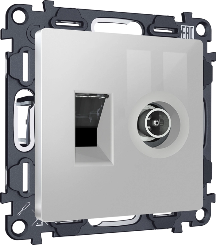 Розетка TV оконечная + компьютерная RJ-45 CAT6 Ambrella ALFA (Серебро глянец)