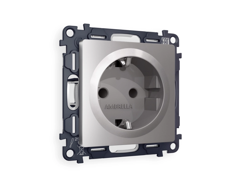 Комплект механизма электрической розетки ALFA MA507010 Сталь матовый 16A-250V 50Hz 2P+E с заземлением с шторками QUANT (AP5070, VM141)
