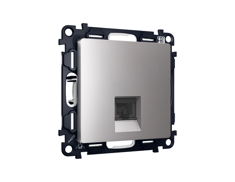 Комплект механизма компьютерной розетки ALFA MA512010 Сталь матовый RJ-45(8P8C) CAT6 1000 Base-T с автоматической защитной шторкой QUANT (AP5120, VM188)