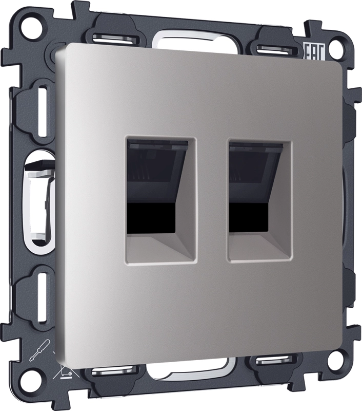Розетка информационная двойная Ambrella ALFA СТАЛЬ МАТОВЫЙ