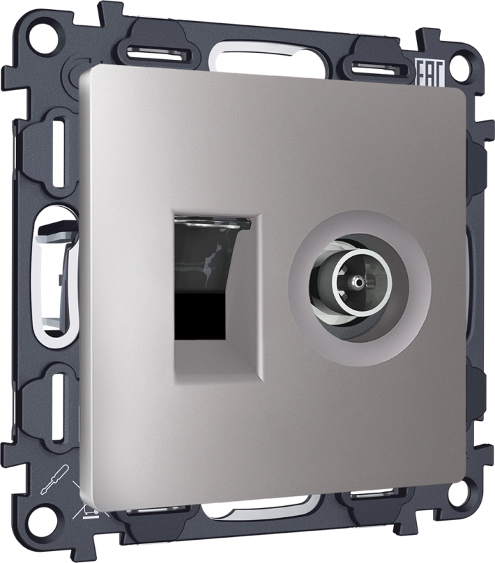 Розетка TV оконечная + компьютерная RJ-45 CAT6 Ambrella ALFA (Сталь матовый)