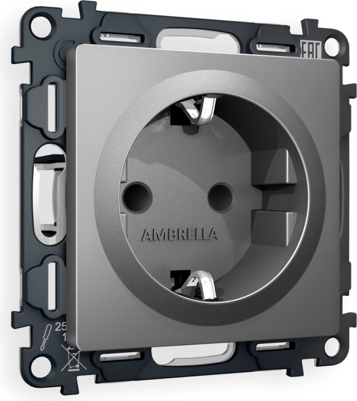 Розетка электрическая Ambrella ALFA АНТРАЦИТ СЕРЫЙ