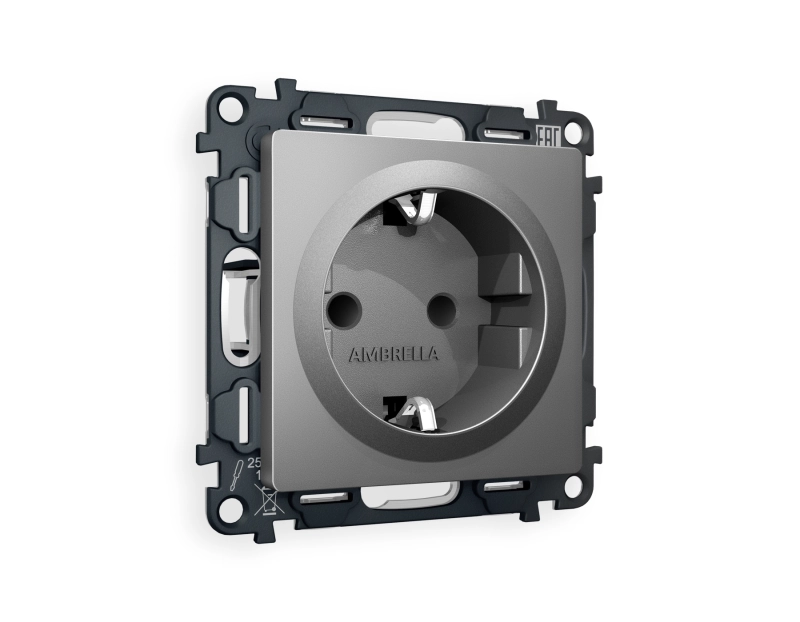 Комплект механизма электрической розетки ALFA MA657010 Антрацит серый 16A-250V 50Hz 2P+E с заземлением и шторками QUANT (AP6570, VM141)