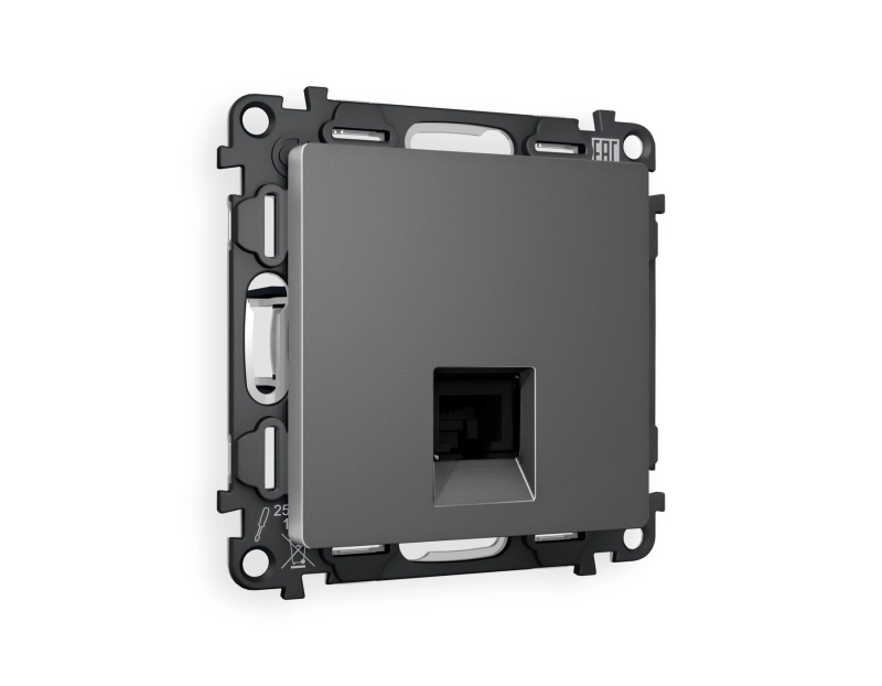 Комплект механизма телефонной розетки ALFA MA662030 Антрацит серый RJ-11(4P4C) с автоматической защитной шторкой QUANT (AP6620, VM190)