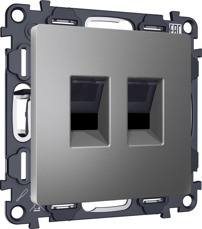 Розетка информационная двойная Ambrella ALFA АНТРАЦИТ СЕРЫЙ