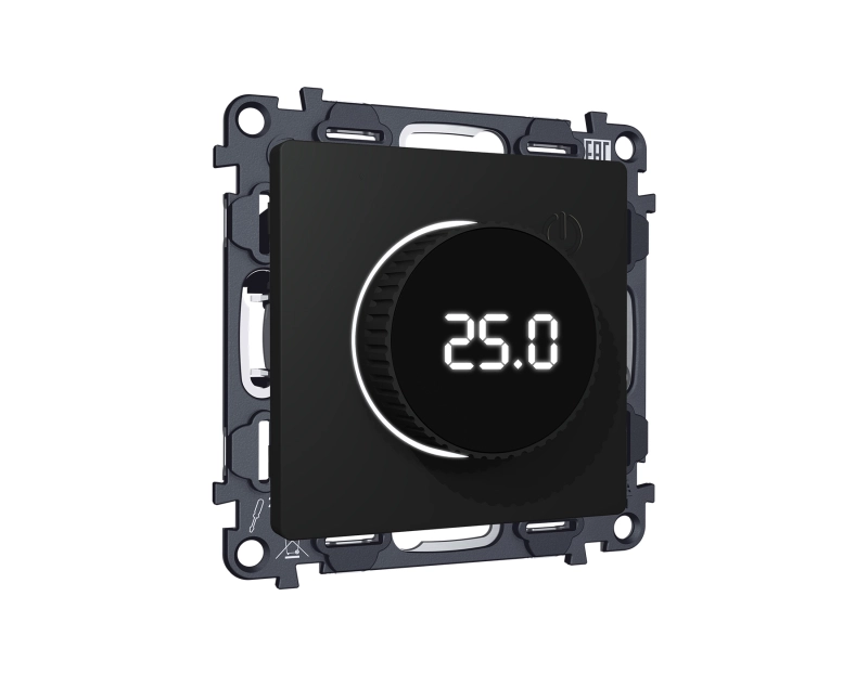 Комплект механизма терморегулятора с цифровым дисплеем с подсветкой и датчиком для теплого пола 16A-250V ALFA MA805810 Черный матовый QUANT (AP8058, VM1385)
