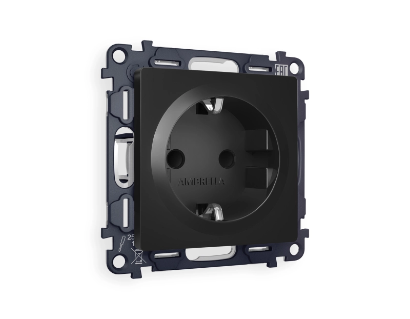 Комплект механизма электрической розетки ALFA MA807010 Черный матовый 16A-250V 50Hz 2P+E с заземлением и шторками QUANT (AP8070, VM141)