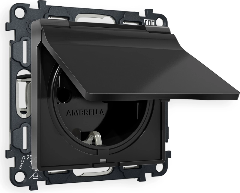 Розетка электрическая Ambrella ALFA ЧЁРНАЯ МАТОВАЯ