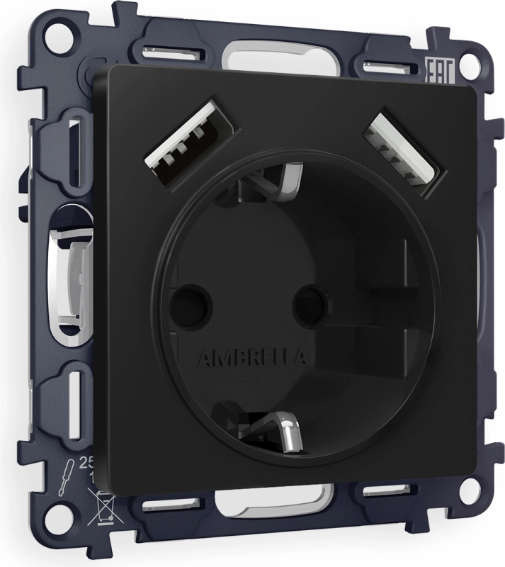 Розетка электрическая Ambrella ALFA ЧЁРНАЯ МАТОВАЯ