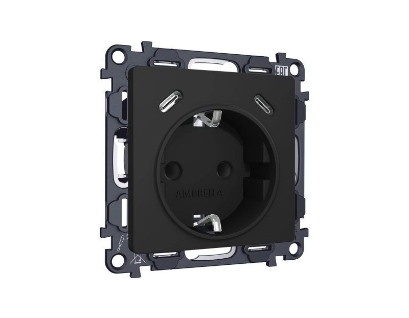 Комплект механизма электрической розетки 2USB С+C 20W (быстрая зарядка) с/з на винтовых зажимах 16A-250V ALFA MA810510 Черный матовый QUANT (AP8105, VM165)