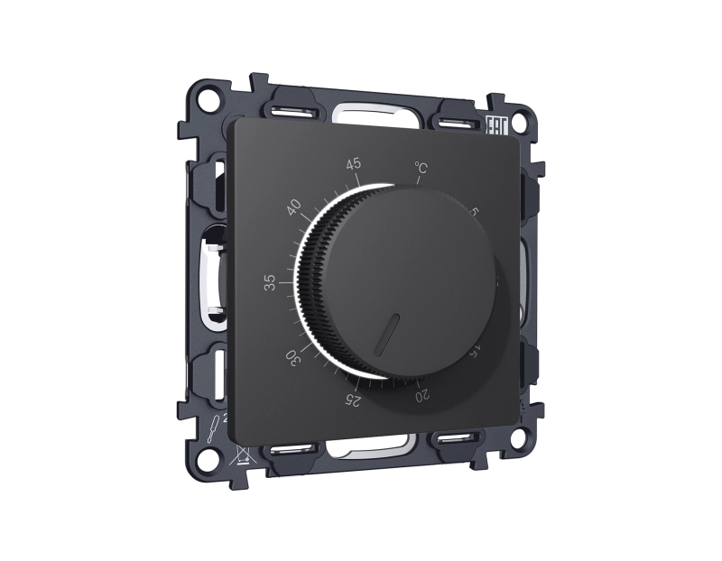Комплект механизма терморегулятора с датчиком для теплого пола с подсветкой 16A-250V ALFA MA905710 Графит мягкое касание QUANT (AP9057, VM1381)