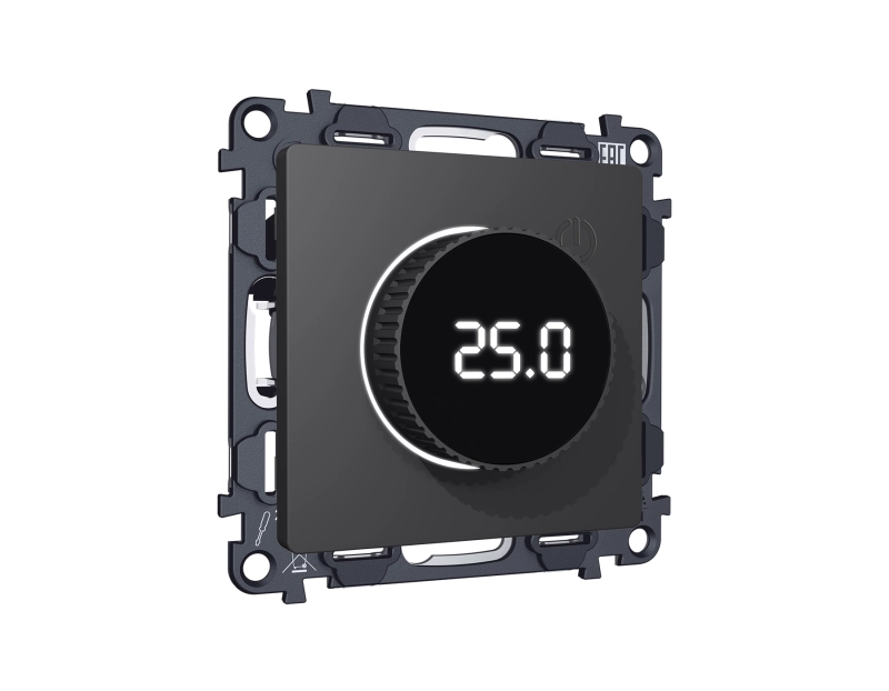 Комплект механизма терморегулятора с цифровым дисплеем с подсветкой и датчиком для теплого пола 16A-250V ALFA MA905810 Графит мягкое касание QUANT (AP9058, VM1385)