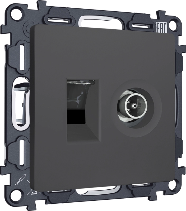 Розетка TV оконечная + компьютерная RJ-45 CAT6 Ambrella ALFA (Графит soft touch)
