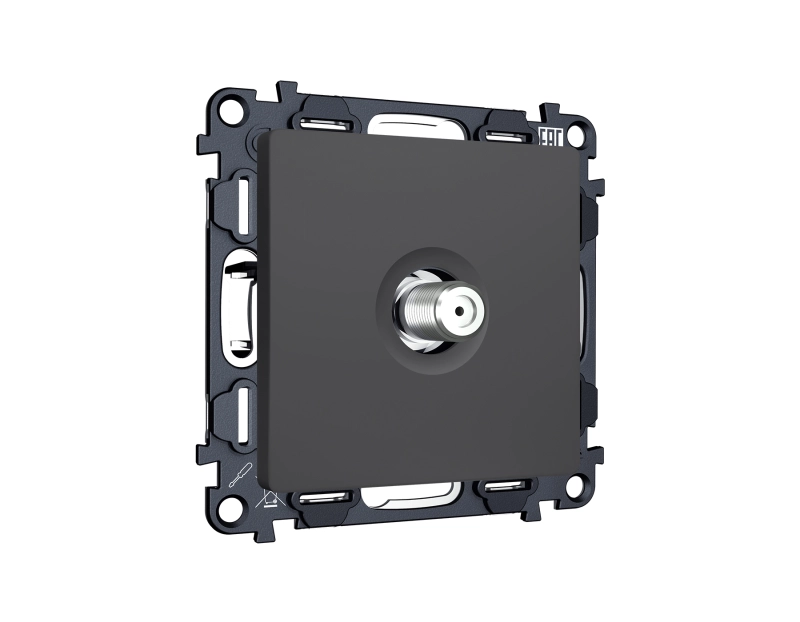 Комплект механизм TV розетки SAT 5-2400MHz 3.5dB ALFA MA913050 Графит мягкое касание QUANT (AP9130, VM215)