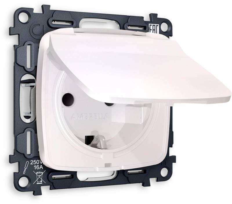 Шторки закрывают контакты розетки и открываются только, когда в розетку вставляется вилка. Это обеспечивает дополнительную защиту детей и препятствует попаданию пыли на контакты.