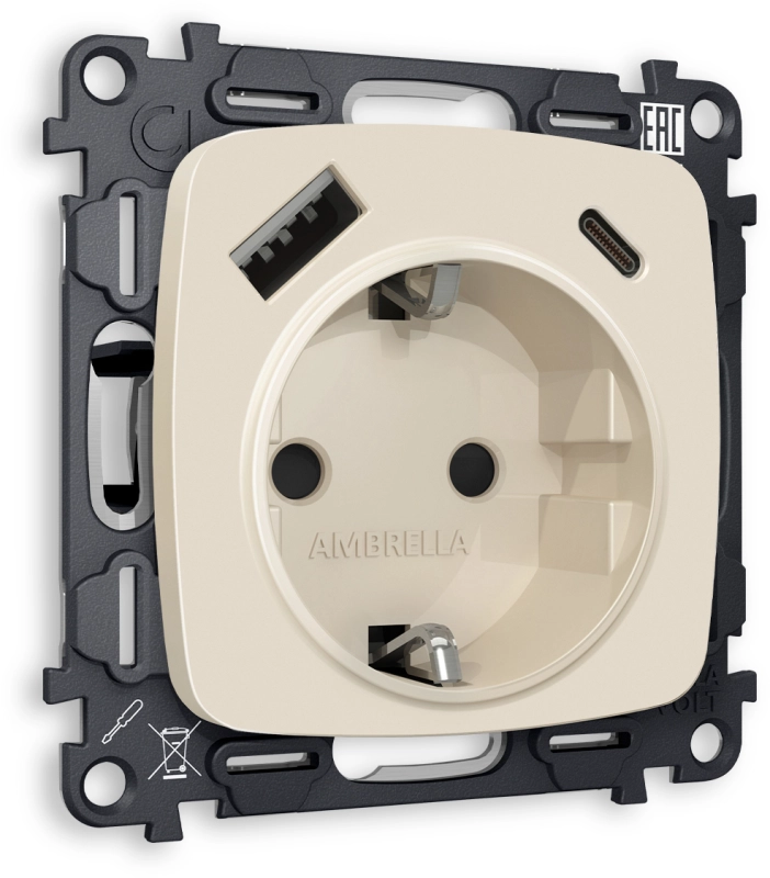 Розетка электрическая Ambrella OMEGA БЕЖЕВЫЙ МАТОВЫЙ