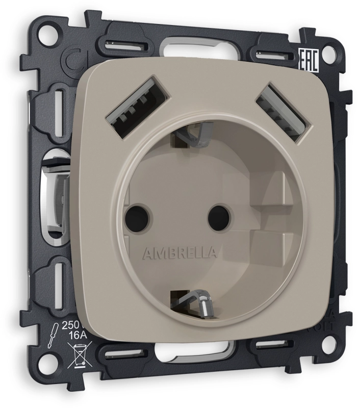 Розетка электрическая Ambrella OMEGA СЕРО-БЕЖЕВЫЙ МАТОВЫЙ