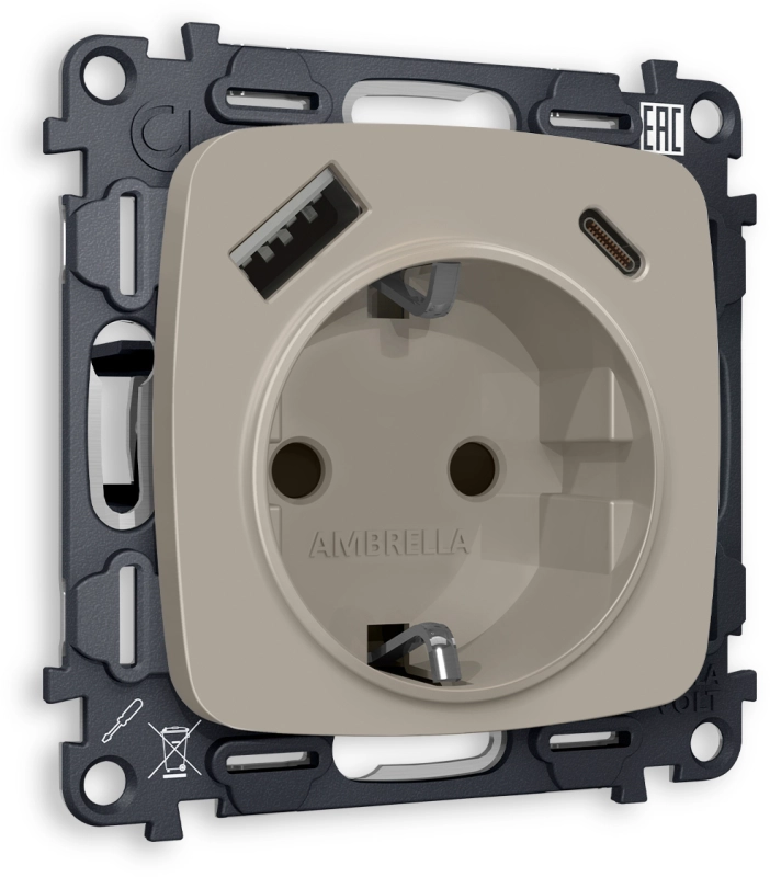 Розетка электрическая Ambrella OMEGA БЕЖЕВЫЙ МАТОВЫЙ