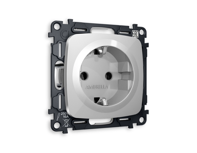 Комплект механизма электрической розетки OMEGA MO406010 Серебро глянец 16A-250V 50Hz 2P+E с заземлением на винтовых зажимах QUANT (OP4060, VM141)