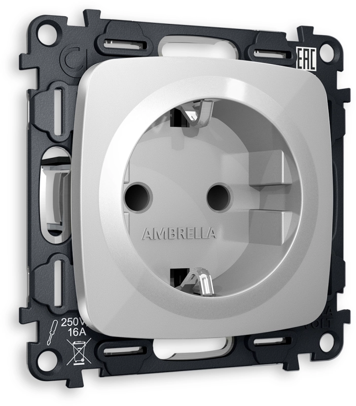 Розетка электрическая Ambrella OMEGA СЕРЕБРО ГЛЯНЕЦ