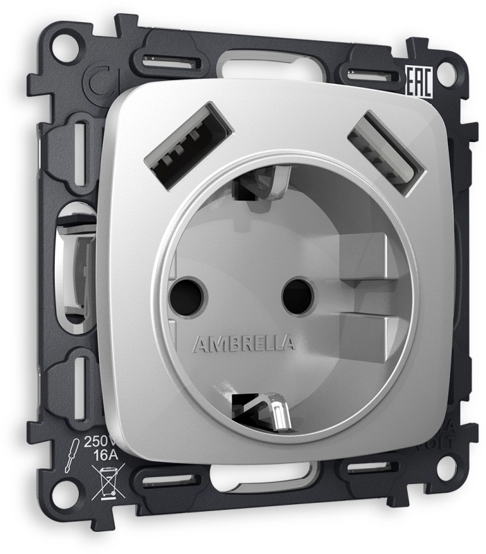 Розетка электрическая Ambrella OMEGA СЕРЕБРО ГЛЯНЕЦ