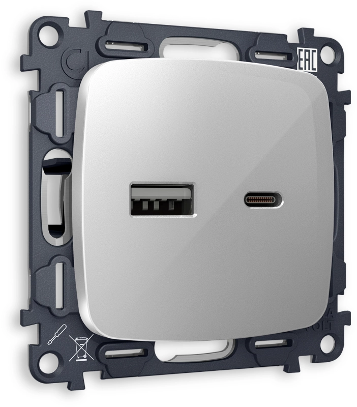 Зарядное устройство USB Ambrella OMEGA СЕРЕБРО ГЛЯНЕЦ