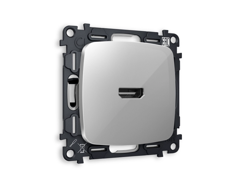 Комплект механизма розетки HDMI 2.0 OMEGA MO414010 Серебро глянец 40V/500mA 2.0GHz 5-18Gbit/s QUANT (OP4140, VM222)