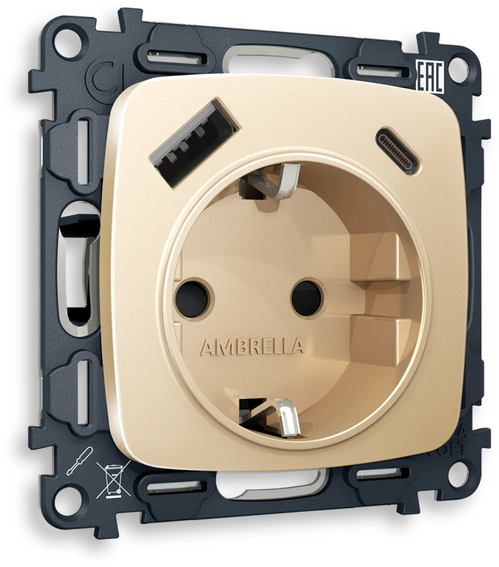 Розетка электрическая Ambrella OMEGA ШАМПАНЬ