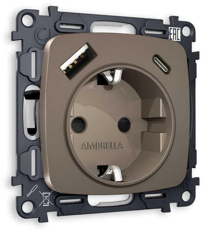 Розетка электрическая Ambrella OMEGA ТЁМНАЯ БРОНЗА