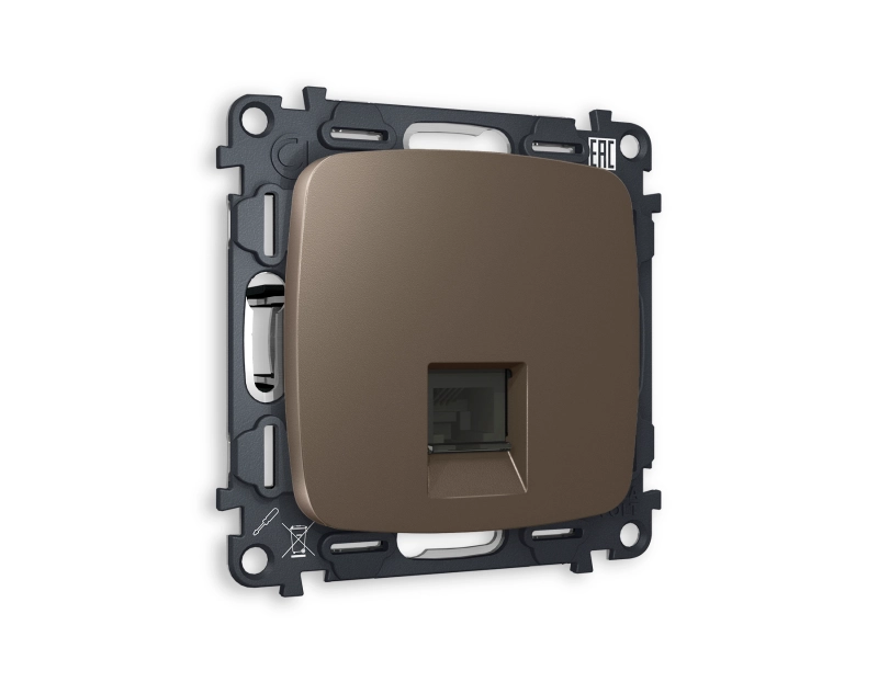 Комплект механизма компьютерной розетки OMEGA MO642010 Темная бронза матовый RJ-45(8P8C) CAT6 1000 Base-T с автоматической защитной шторкой QUANT (OP6420, VM188)