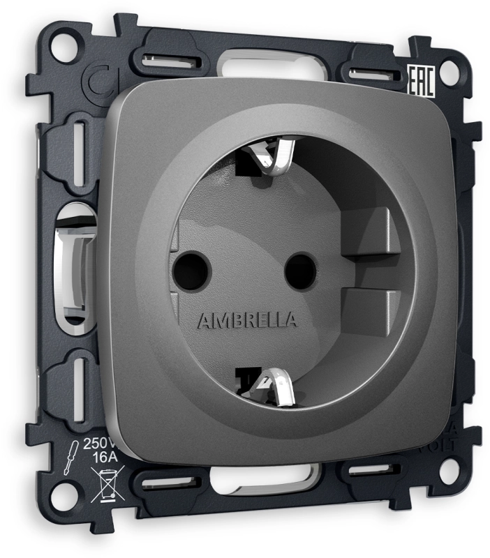Розетка электрическая Ambrella OMEGA АНТРАЦИТ СЕРЫЙ