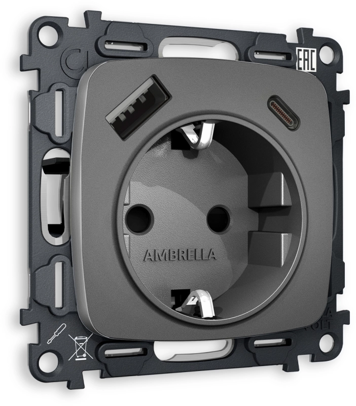 Розетка электрическая Ambrella OMEGA АНТРАЦИТ СЕРЫЙ