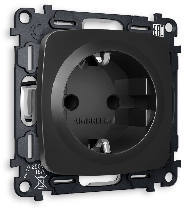 Розетка электрическая Ambrella OMEGA ЧЁРНАЯ МАТОВАЯ