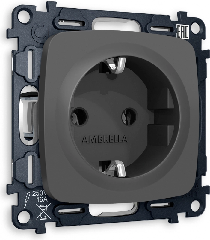 Розетка электрическая Ambrella OMEGA ГРАФИТ SOFT TOUCH