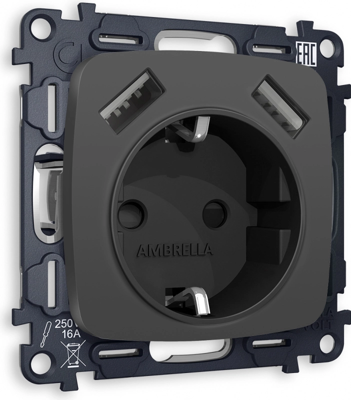 Розетка электрическая Ambrella OMEGA ГРАФИТ SOFT TOUCH
