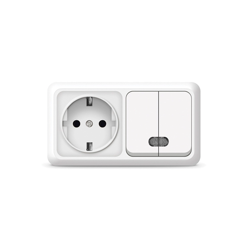 Блок ОП Олимп 2-кл. вык. с подсветкой + роз. с заземл. горизонт. бел. UNIVersal О0037