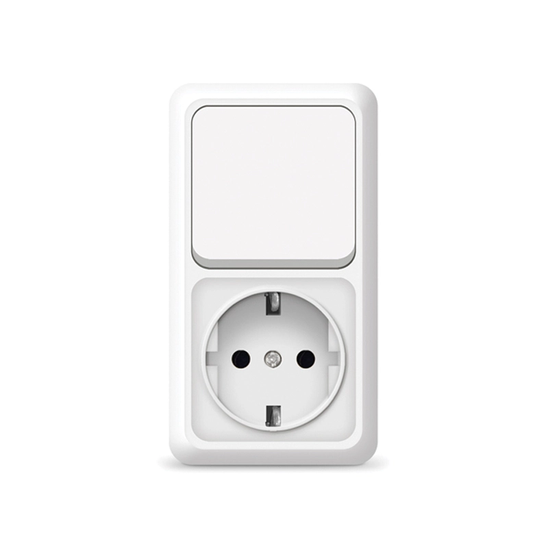 Блок ОП Олимп 1-кл. вык.+ роз. с заземл. верт. бел. UNIVersal О0038