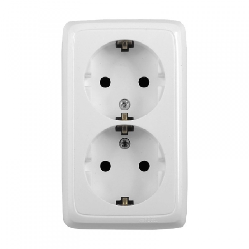 Hegel Альфа наруж Белая РА16-153 Розетка с/з двойная, с изол. пластиной
